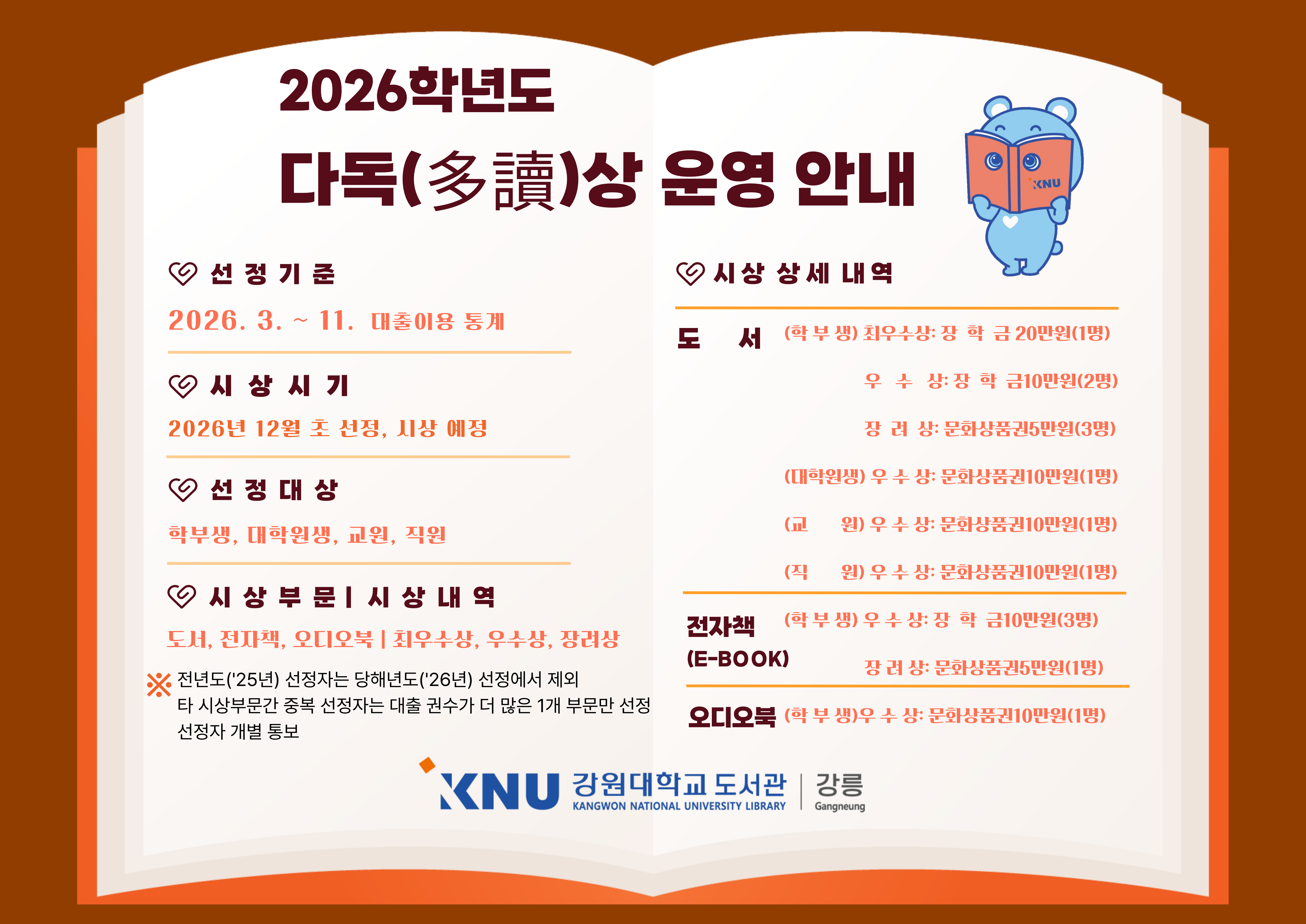 2026학년도 도서관 다독(多讀)상 운영 안내