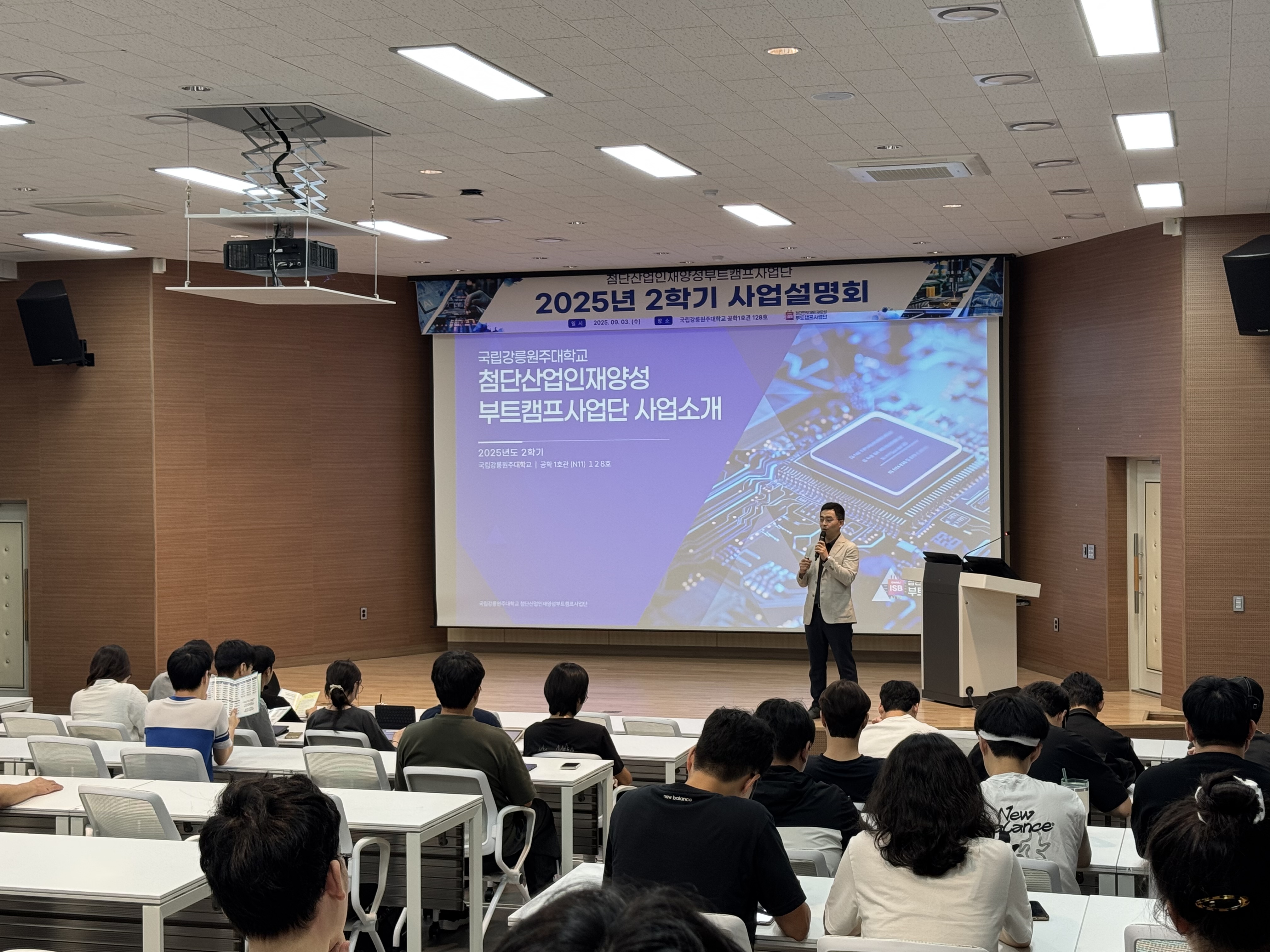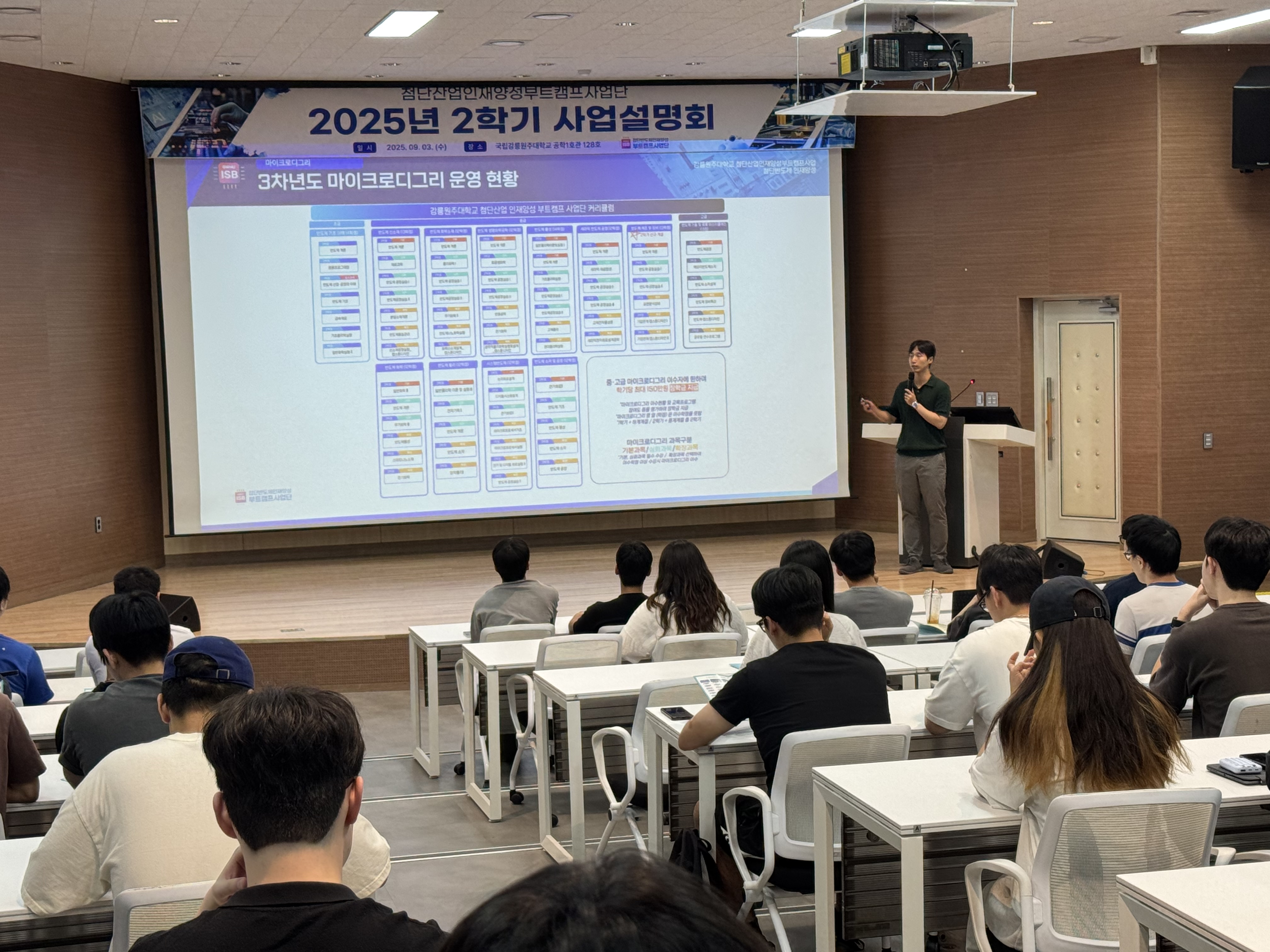 첨단산업 인재양성 부트캠프사업단은 지난 9월 3일(수) 사업설명회를 개최하였다. 이번 설명회에서는 교육 프로그램 안내, 글로벌 연수 프로그램 변경 안내, 25년 비교과 프로그램 안내 등을 진행하였다. 사업단의 목표, 커리큘럼, 지원 혜택 등을 설명하여 사업 참여와 관련하여 학생들의 궁금증을 해소하는 시간이 되었다.