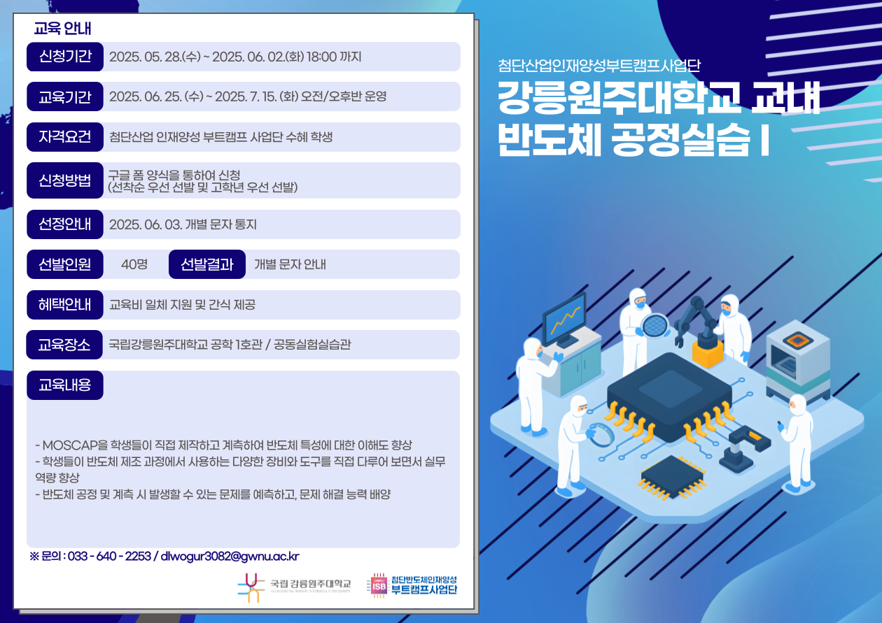 1. 교육명 : 반도체 공정실습 I (국립강릉원주대학교 교내 실습)