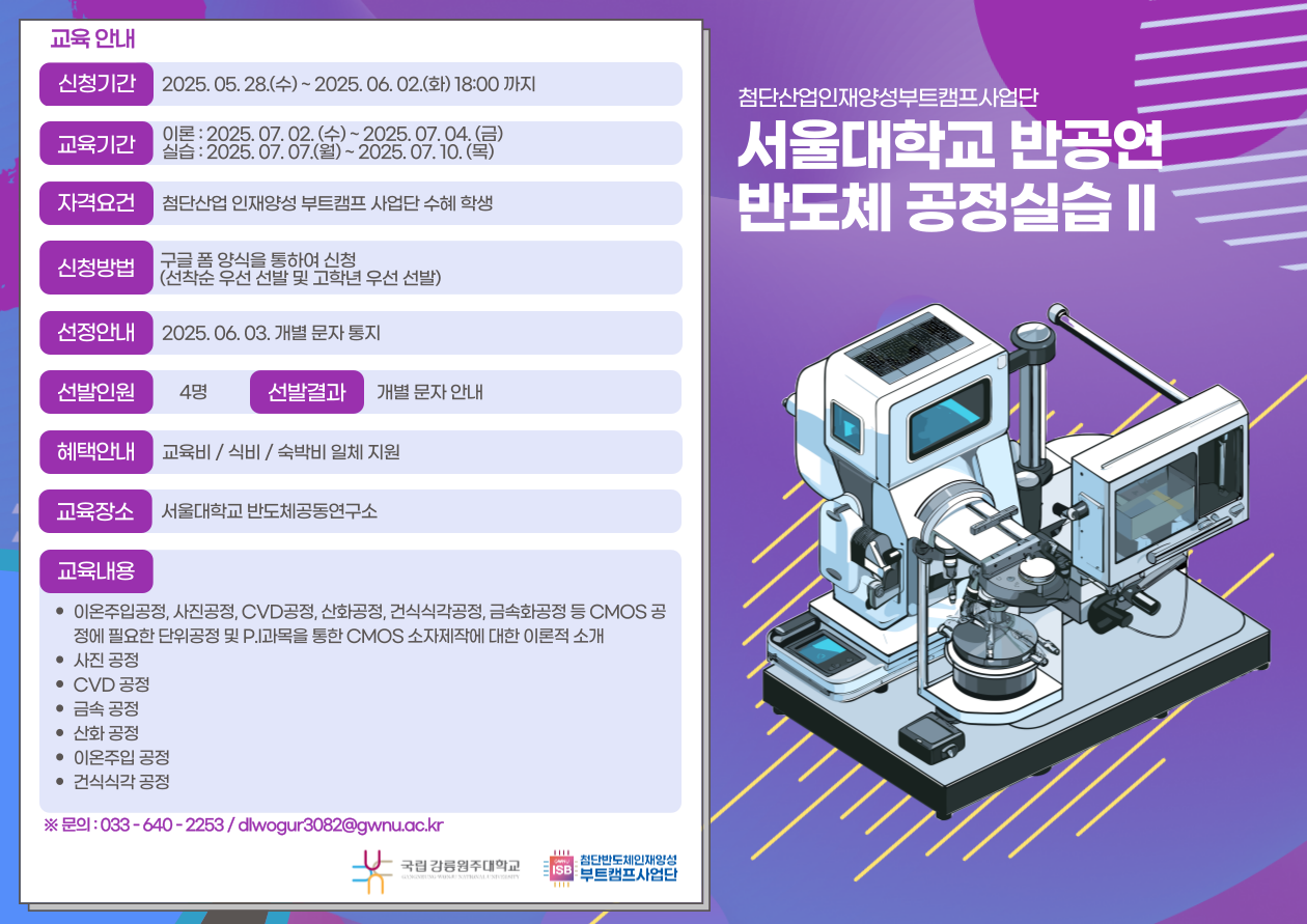 1. 교육명 : 반도체 공정실습 II (서울대학교 반도체공동연구소)