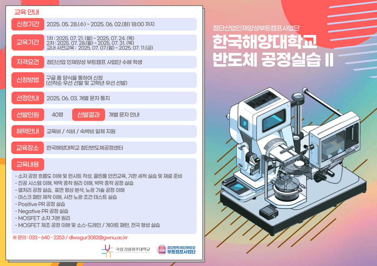 1. 교육명 : 반도체 공정실습 II (한국해양대학교 첨단반도체공정센터)