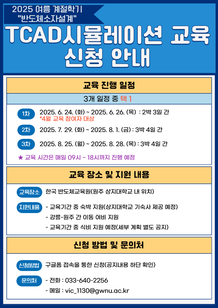 TCAD시뮬레이션 교육 신청 관련 내용을 안내드립니다.