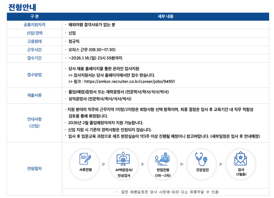 지원링크:https://amkor.recruiter.co.kr/career/jobs/94951