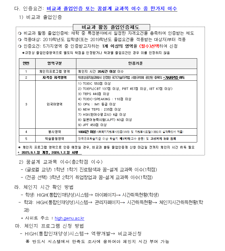 2026학년도 비교과 활동 졸업인증제 시행 알림