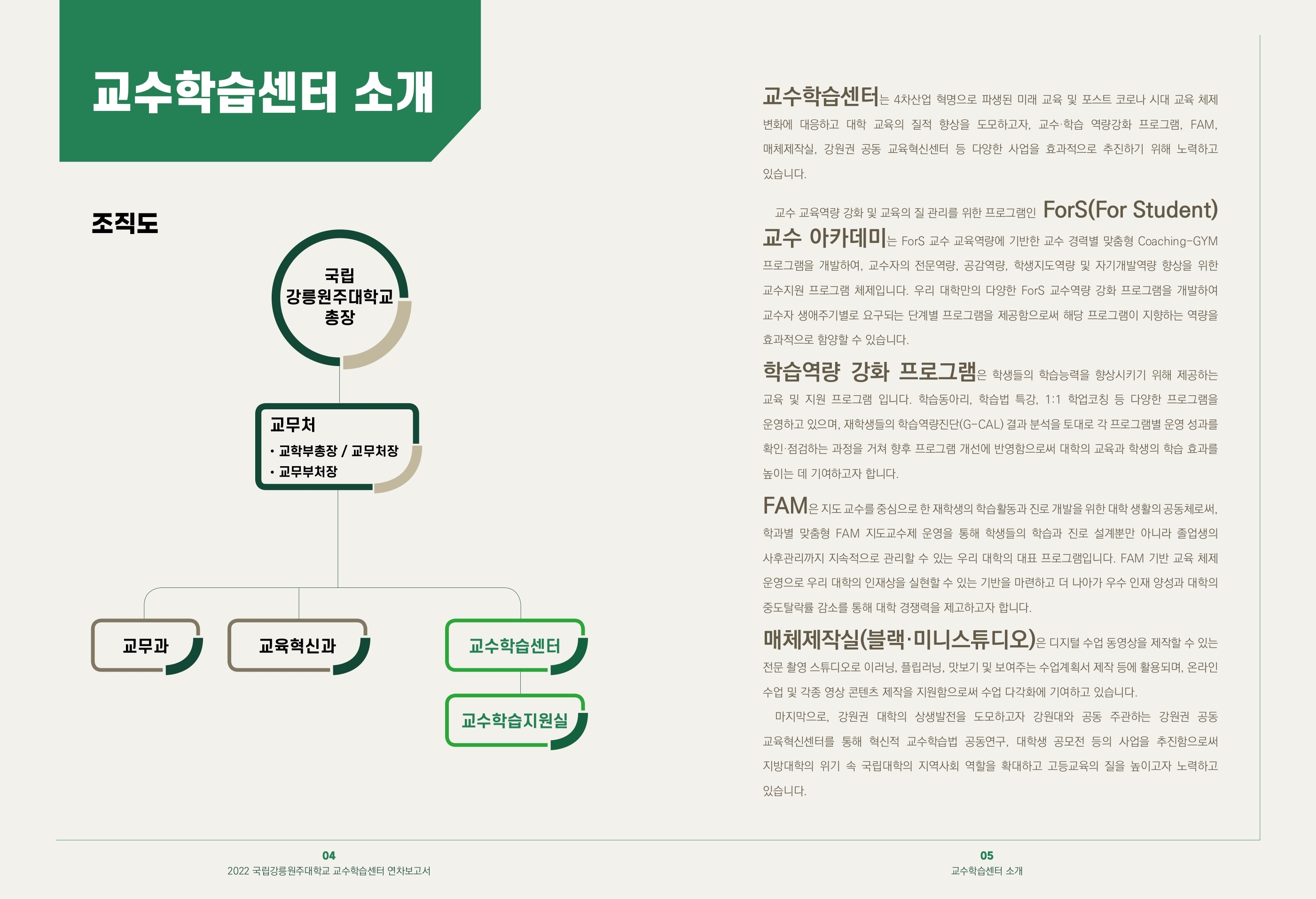 저희 교수학습센터에서는 2022년에 수행한 교수·학습 프로그램별 목표와 내용, 운영 결과를 공유하고