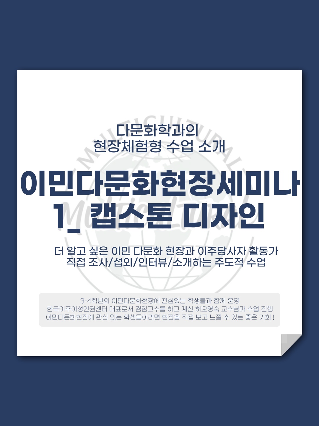 *2025년 1학기 전공선택 과목으로 개설된 <이민다문화현장세미나> 수업의 결과물입니다!