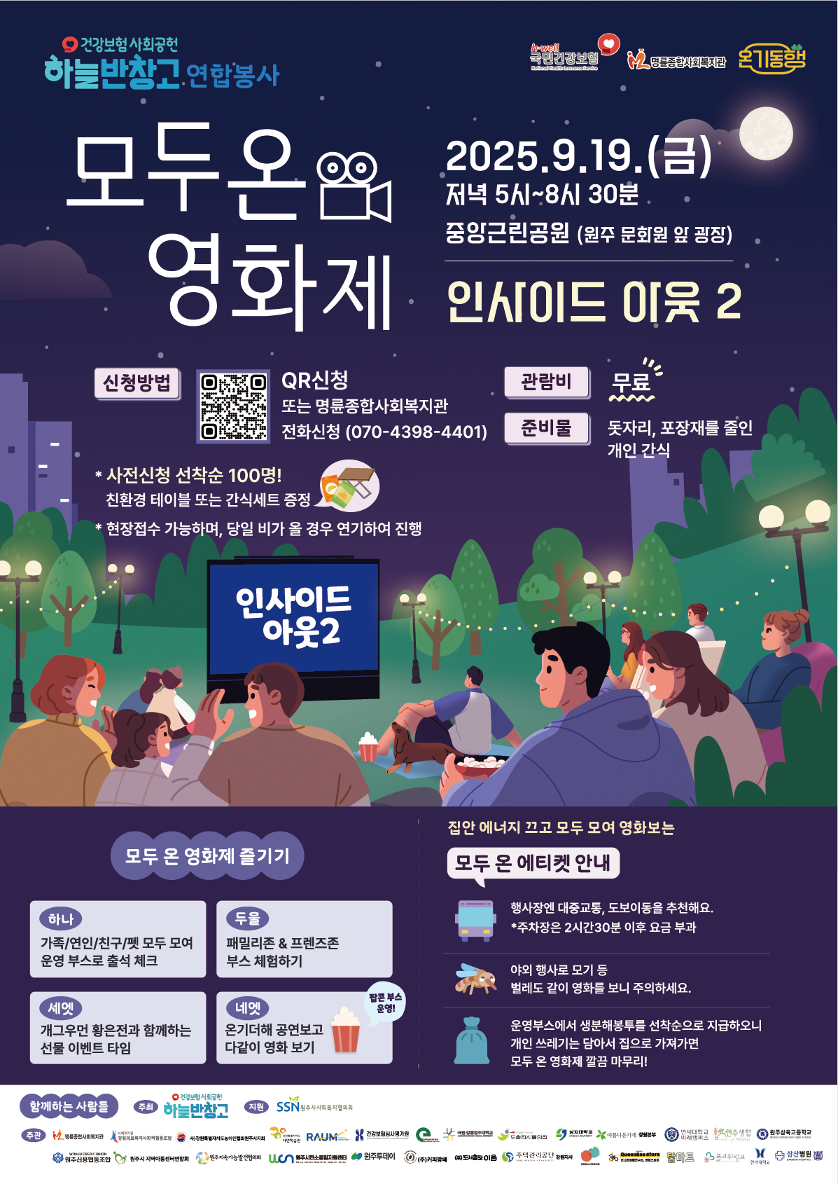 지난 9월19일(금)  "2025년 모두온영화제"에 사회복지학과 재학생 12명이 자원봉사자로 참여하여 활동하였습니다.