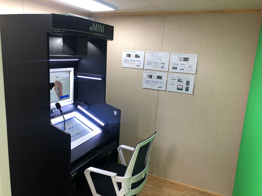 - 교수자 1인이 오버헤드 카메라와 실시간 오버레이 기술을 활용하여 다양한 형태의 온라인 강의 콘텐츠를 손쉽게 제작 가능한 하이브리드 기반 영상 제작 스튜디오입니다.
