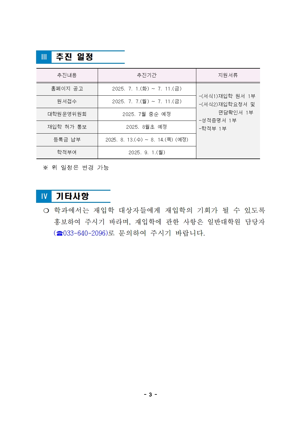 fnctId=bbs,fnctNo=847 2025학년도 2학기 일반대학원 재입학 신청 안내 작성일 2025.06.26 작성자 원민정 조회수 2321 첨부파일 2025학년도 2학기 일반대학원 재입학 시행 계획.hwp 2025학년도 2학기 일반대학원 재입학 신청 안내.pdf